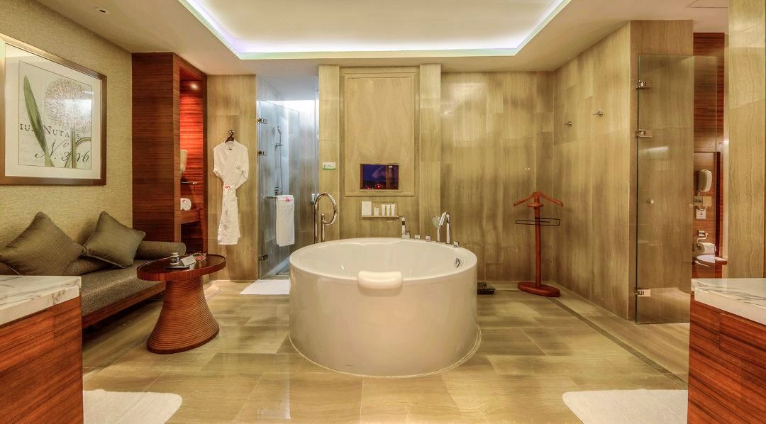 三亞海棠灣9號溫泉度假酒店擁有449間雅致客房及套房,其中包含406間60平米及以上的寬敞客房,42間配備獨特的套房,以及750平米的豪華總統套房。所有客房均配有陽臺,臨庭可觀潔白私家沙灘,臨窗可觀靜謐園景,抑或遠眺浩瀚中國南海海域。