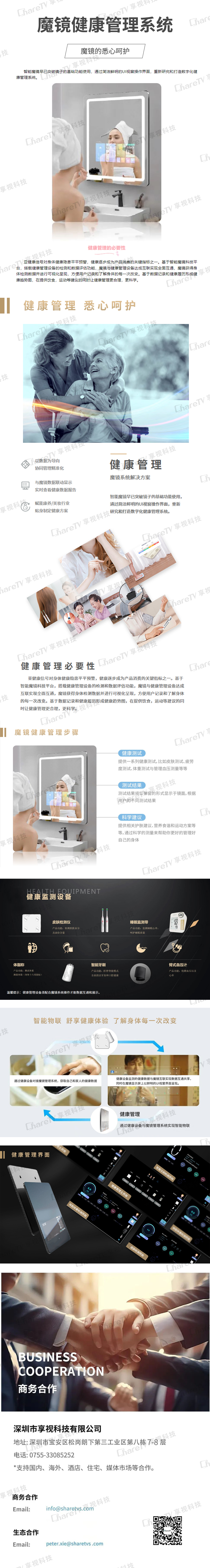 智能魔鏡的健康管理模塊,通過(guò)連接智能檢測(cè)設(shè)備體脂秤、血糖儀、血壓儀、睡眠帶,智能牙刷,皮膚檢測(cè)儀,身體健康指標(biāo)一目了然,成為你專屬的健康管家。