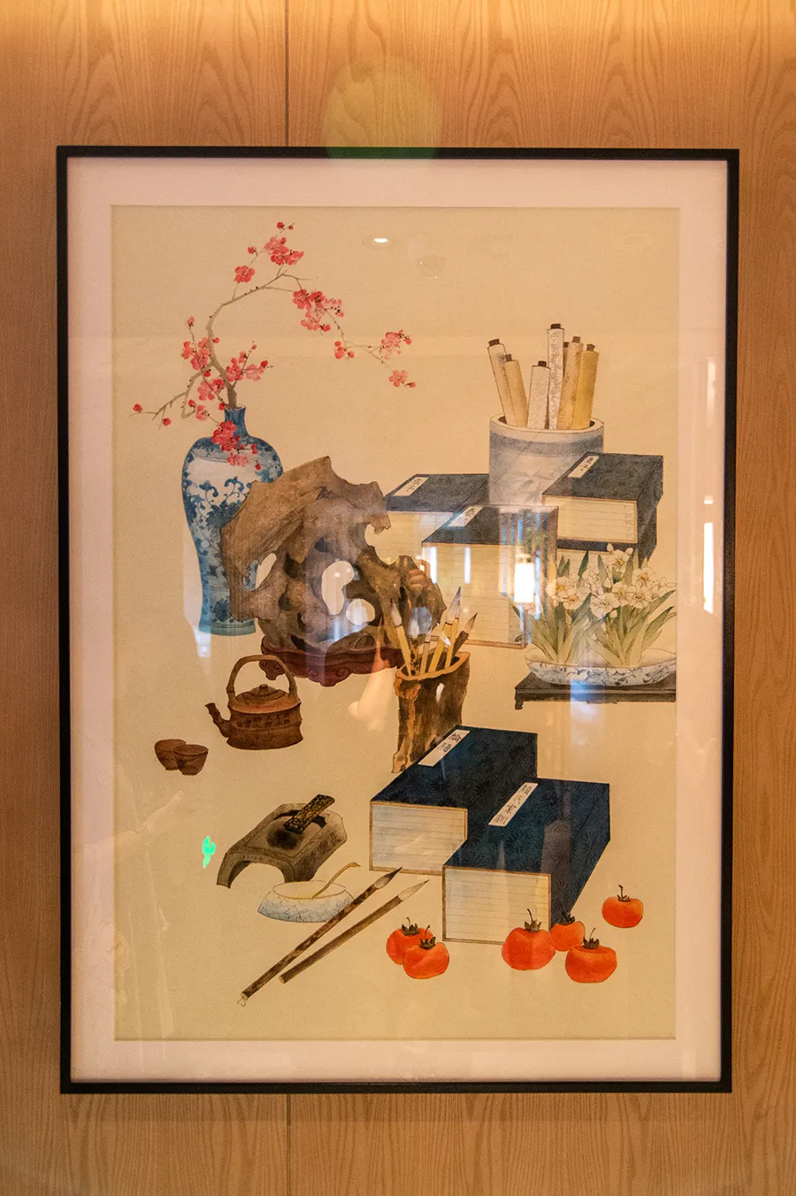 前廳又稱天井,是古代屋主和客人們進入房屋的主要入口。一步入前廳,便會被別致的窗格屏風設計所吸引。16米高的半鏤空木制屏風框架和開合不一的窗格屏風完美還原了傳統古宅的前廳設計。